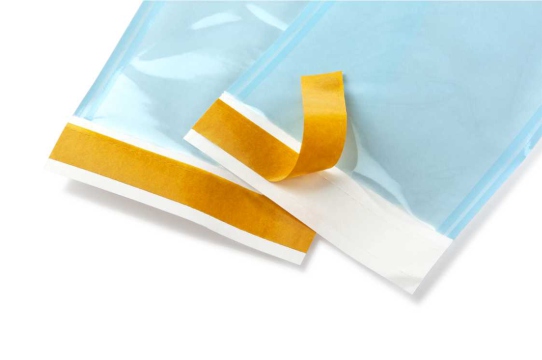 Предназначены для стерилизации водяным паром, оксидом этилена, а также формальдегидом (при использовании дополнительно соответствующего индикатора). Химические индикаторы стерилизации водяным паром и оксидом этилена размещены на бумаге в верхней части пакета за линией спаивания. Благодаря выступающей бумажной части с нанесенным слоем клея для закрытия пакетов не нужна сварочная машина.