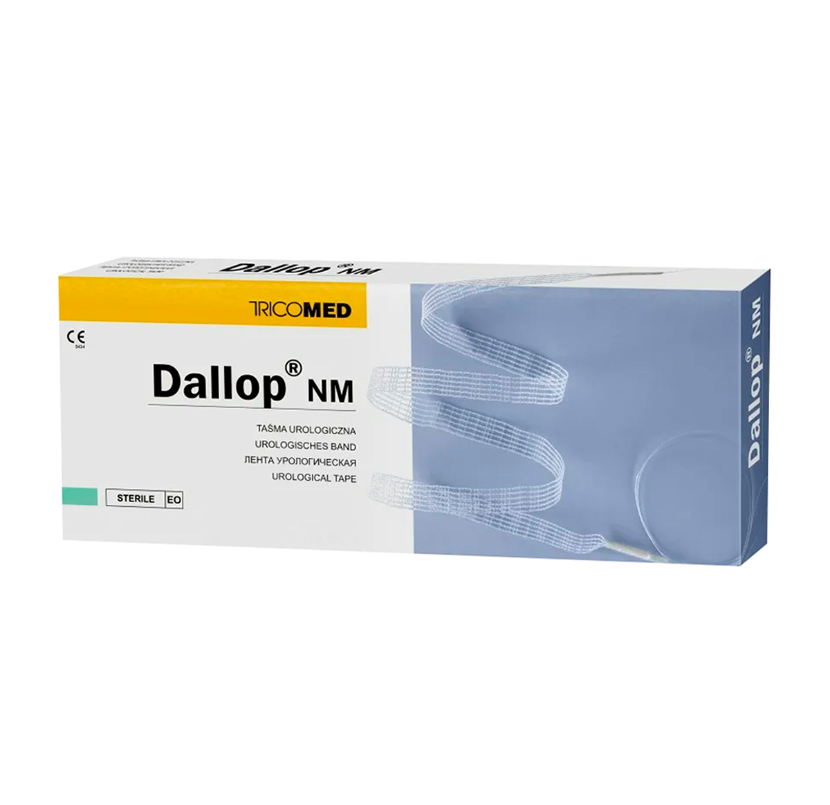 Урологическая лента Dallop NM производится из прозрачной монофиламентной полипропиленовой пряжи с использованием технологии вязания. На обоих концах ленты имеются голубые ручки, которые обеспечивают надежное крепление ленты на соответствующем аппликаторе. Ручки также изготовлены из монофиламентной полипропиленовой пряжи и имеют дополнительную защиту, предотвращающую вырывание ленты под воздействием сил, необходимых для её проведения сквозь анатомические структуры.